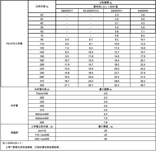 一、預制直埋PERTⅡ型保溫管的規(guī)格尺寸應符合下表技術參數(shù)。